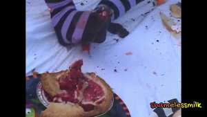 Here are some some screenshots from a video where this cute lil pink clowngirl took some crusty whipped cream filled pie shells to the face. My makeup got completely ruined and it got in my naturally auburn hair / pigtails and all over my bikini top.... Starring: | ||||